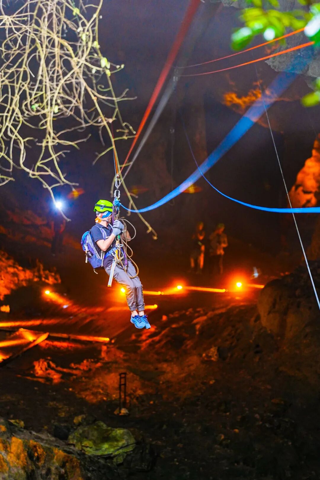 酷玩森林溶洞大环线的起点,领队杨东先行一步滑索进洞