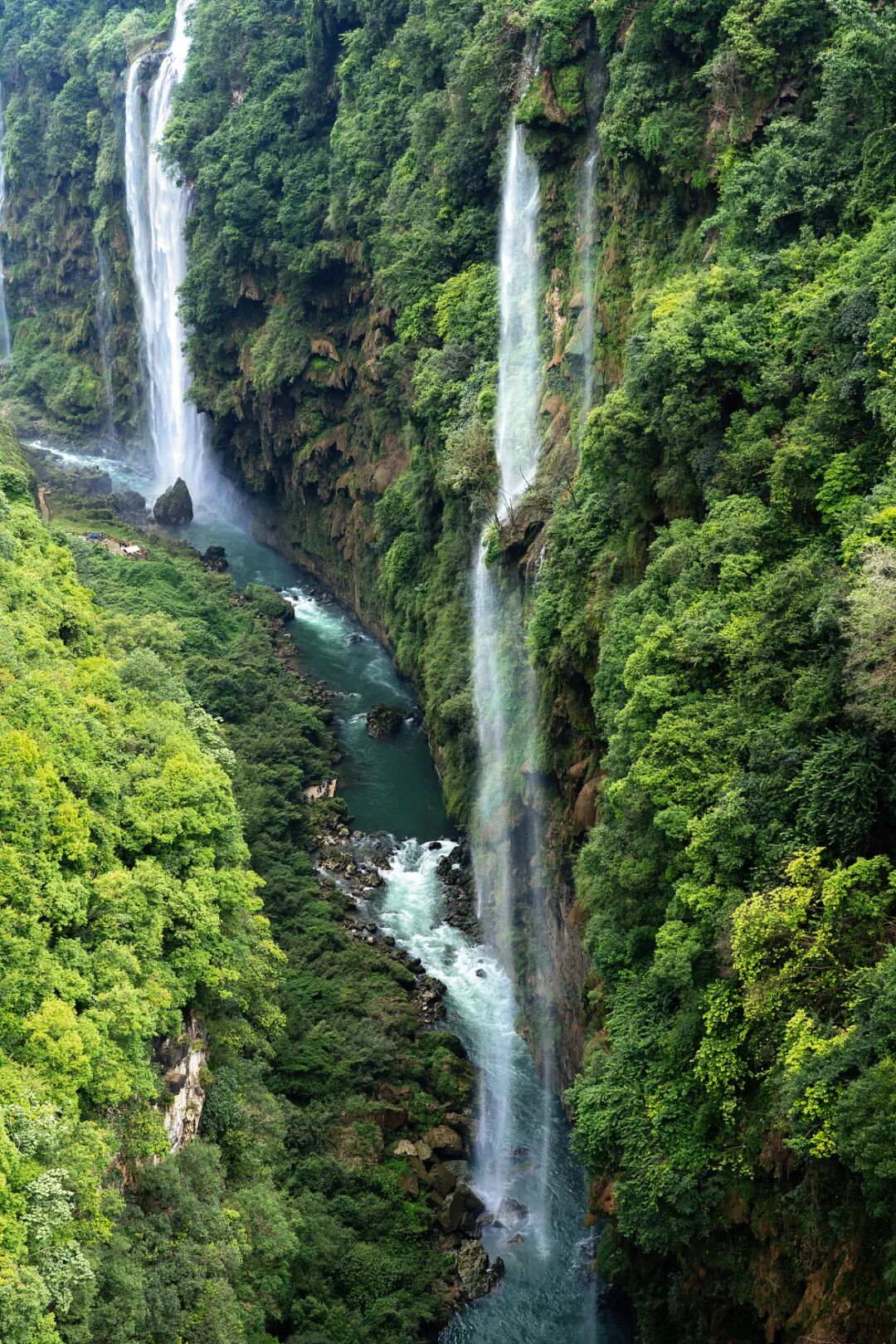 小七孔68级跌瀑(上)和拉雅瀑布(下)