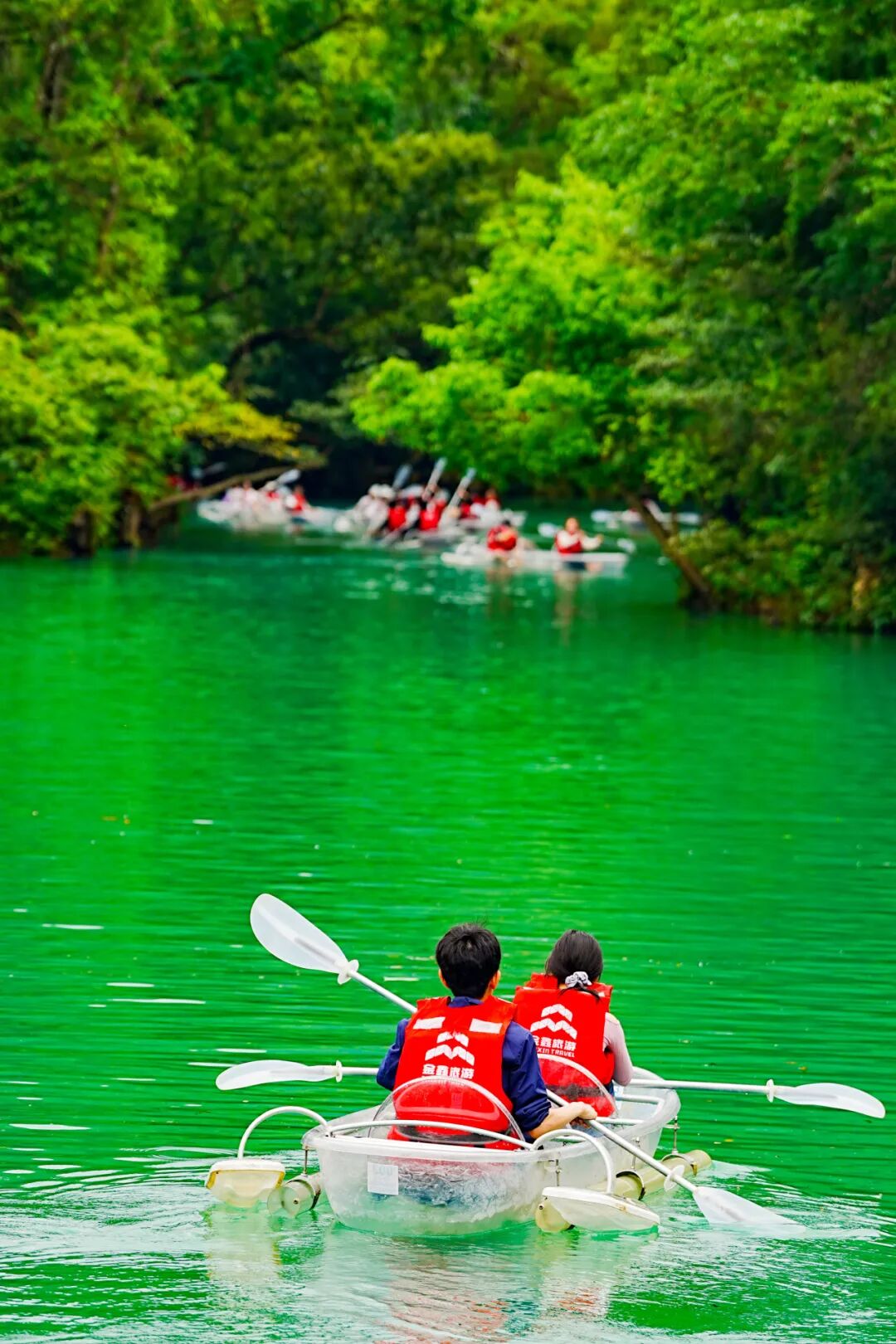 鸳鸯湖的透明船吸引了众多年轻人
