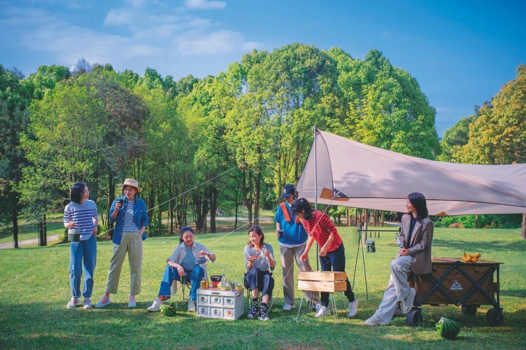 陈科杰的红豆湾露营基地价格亲民,自带帐篷只需50元就能选个位置。这个基础费用包含卫生间、洗澡间、热水和照明用电。这里是城市周边绝佳的轻徒步路线,适合短途逃离、放空休憩。人们可以在山水间轻徒步、微度假,露营玩水的门槛极低。
