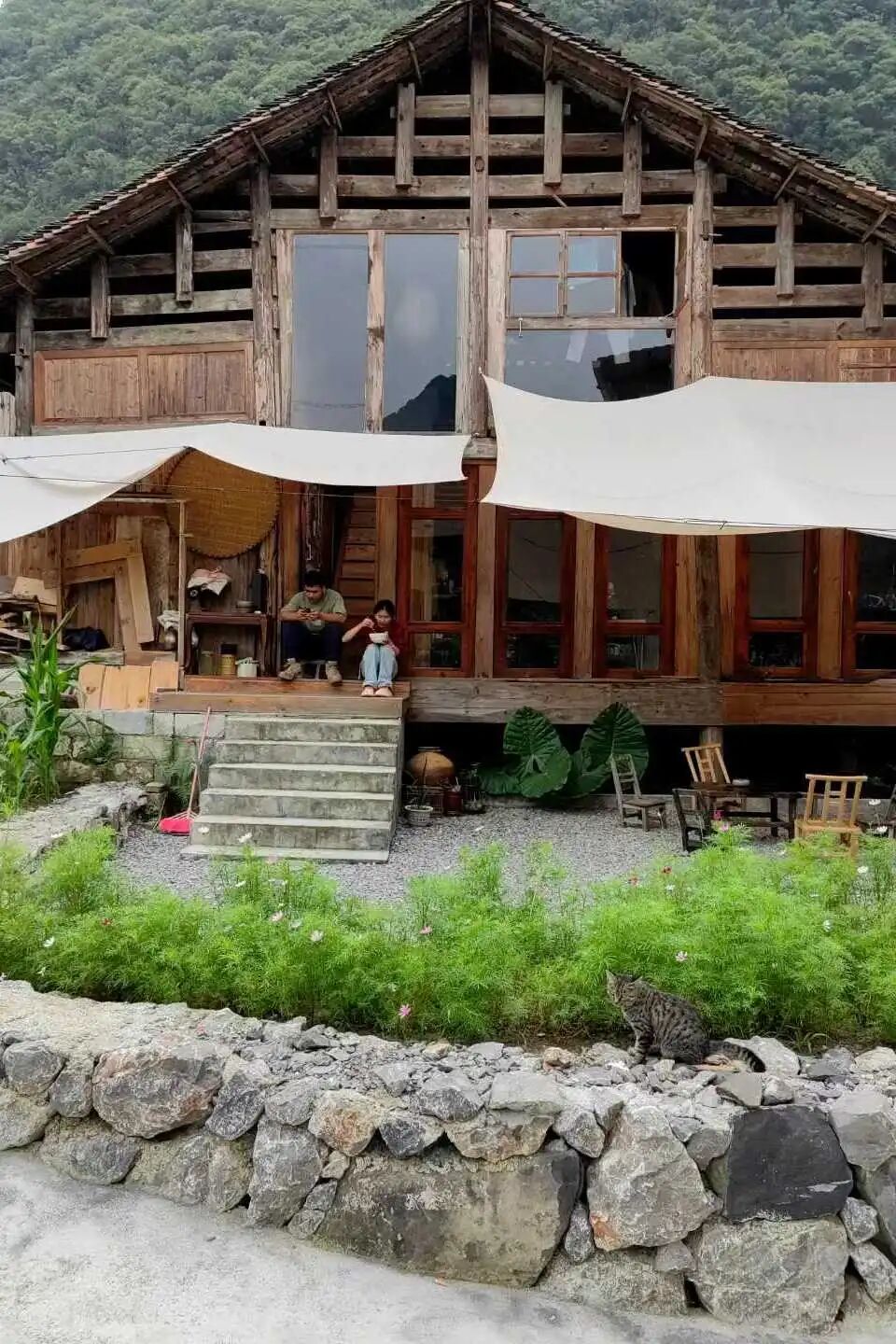 这时一只狸花猫跳到了安宇的腿上。“总之不要活得太刻意,来这里就是要感受自然真实的美,哪怕用笨拙的方式观山,亲水,抱树,抓鱼,野餐,看一朵云彩,感受一缕光线,在蛙声中睡个好觉。”他挠着小猫的后颈如是说。