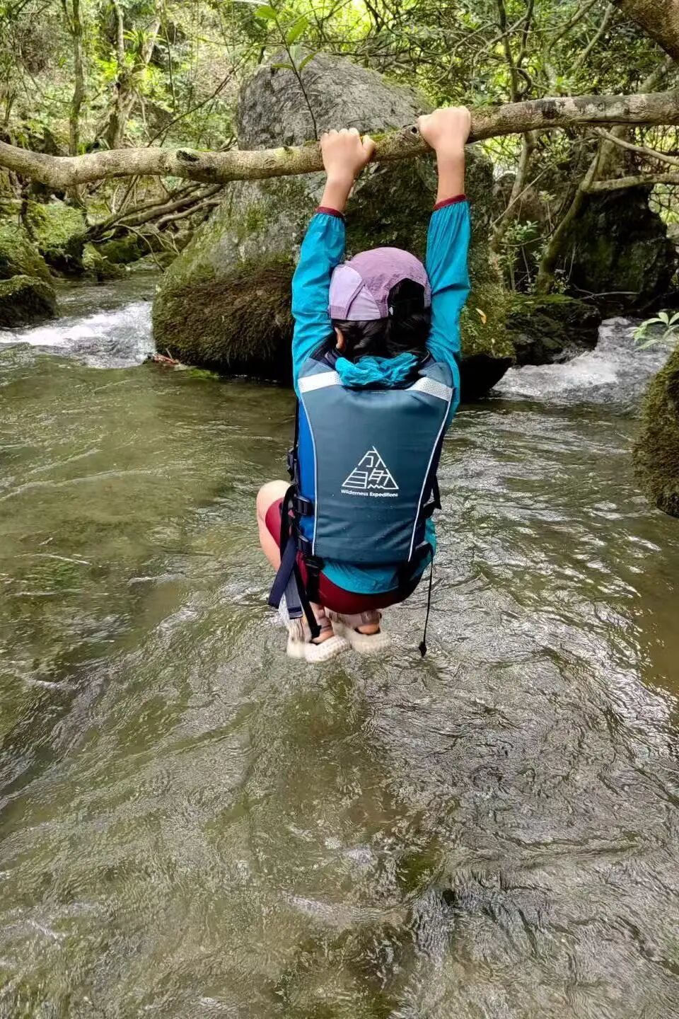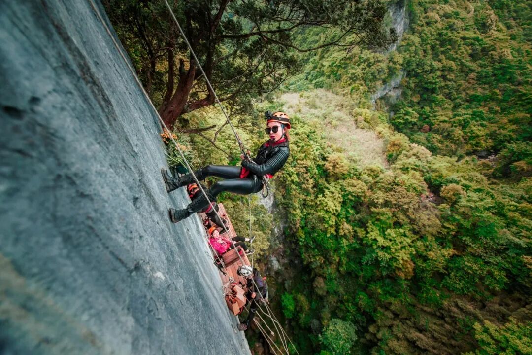 25米高差的绳索速降,对于户外小白而言有些挑战。划过地下河的时光相当浪漫,“地心探险”的未知感是其魅力所在。也有人在出洞之前,选择吃个火锅再走