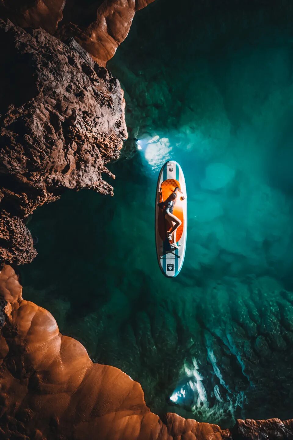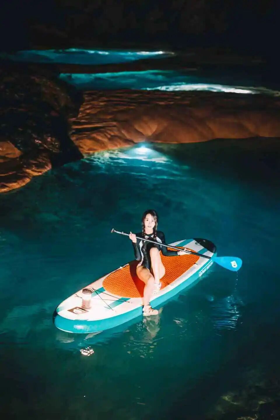 石龙洞的特别,在于这里是贵州罕见的“桨板探洞”地。洞内布满水潭,需划板穿行。水潭之间需搬桨板徒步,而这一环节由教练负责。“你换好装备,空手进洞就行。其他所有的事都由我们搞定。”陈千议一拍胸脯说。