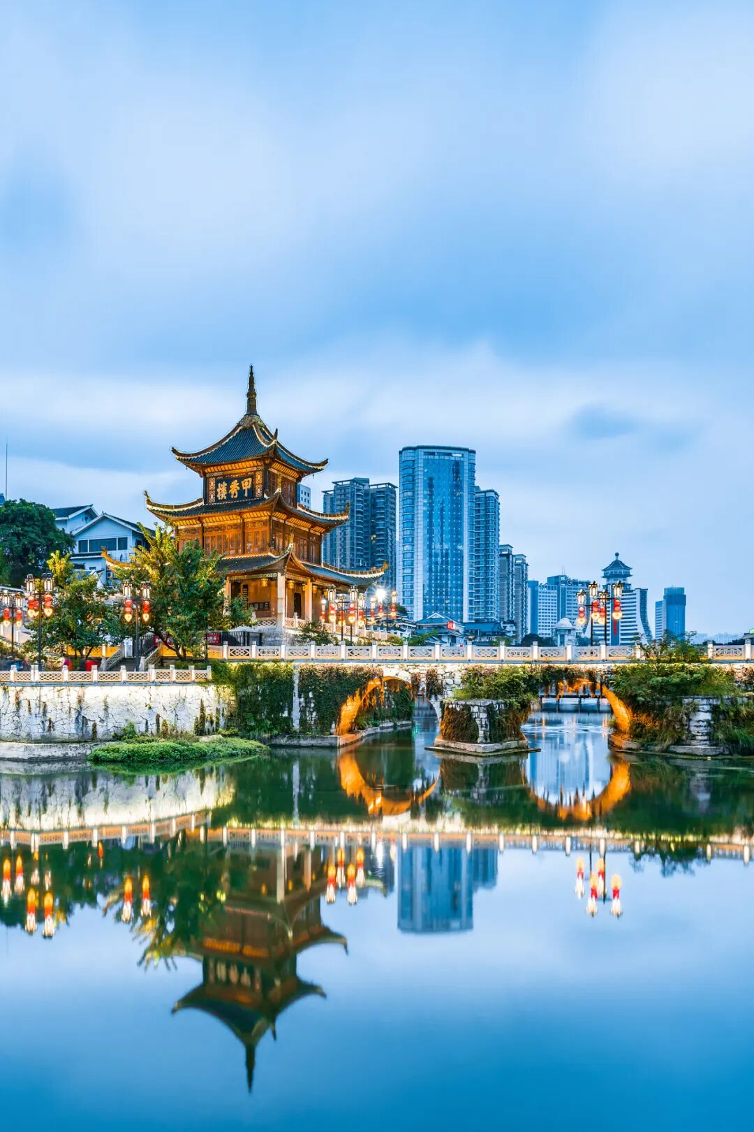 南明河上,贵阳的地标建筑:甲秀楼