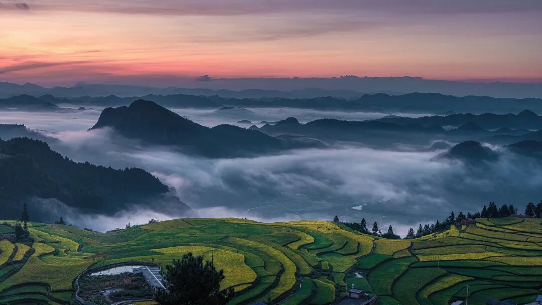 贵定腊利梯田的云海(上)与秋收景象(下)