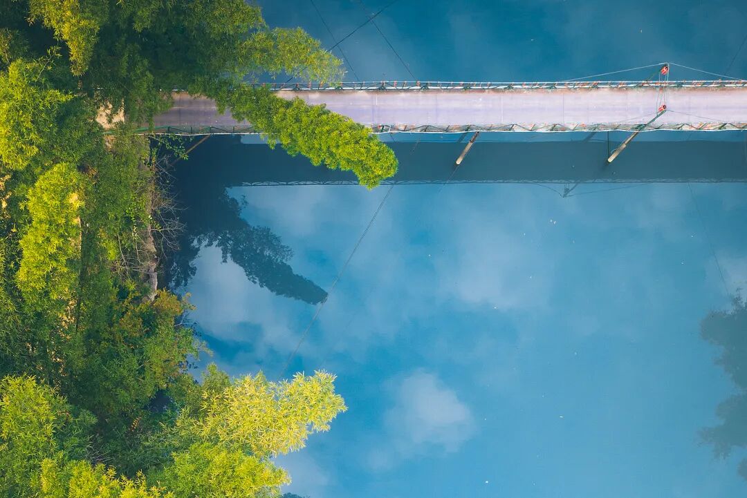 经过严格报备,航拍器升空,镜头掠过森林、湖泊与河流,浓绿密布、水光潋滟,画面仿佛滤镜开满的夏日梦境。