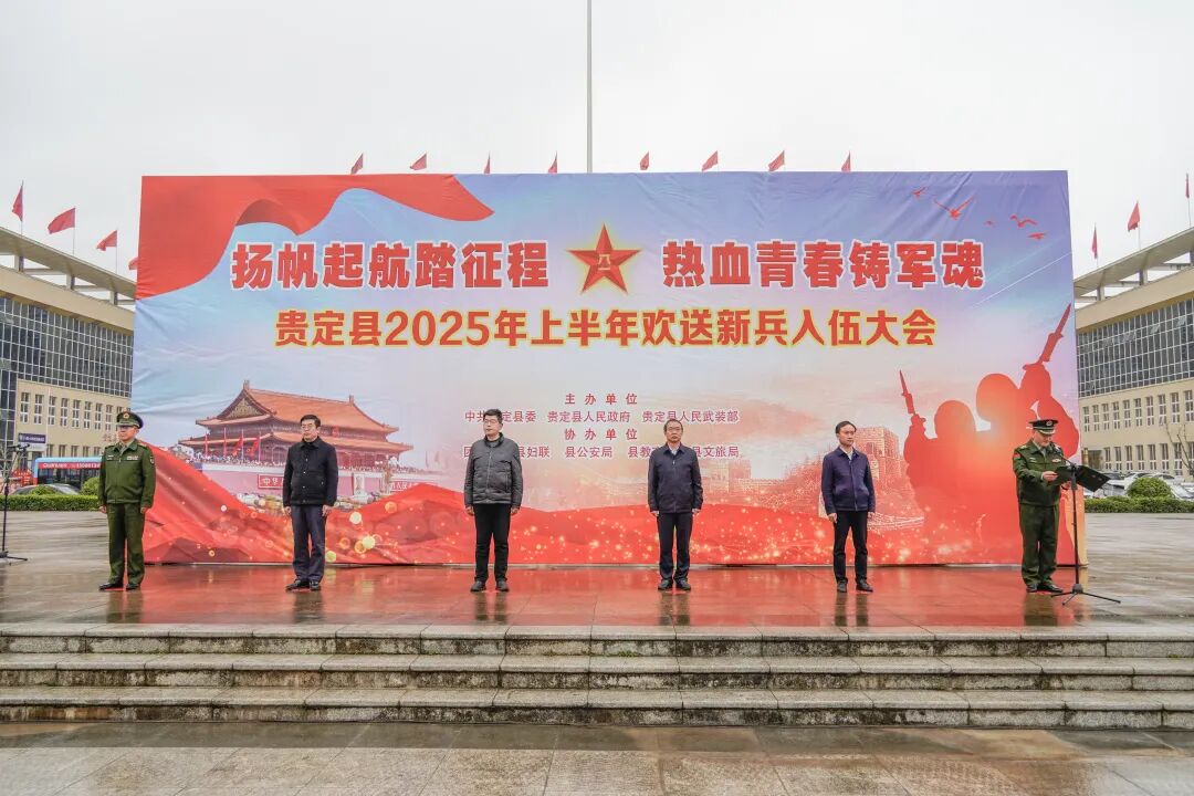 县征兵工作领导小组成员单位负责人、各镇(街)武装部长、高校专武干事、贵定二小学生代表参加欢送大会。