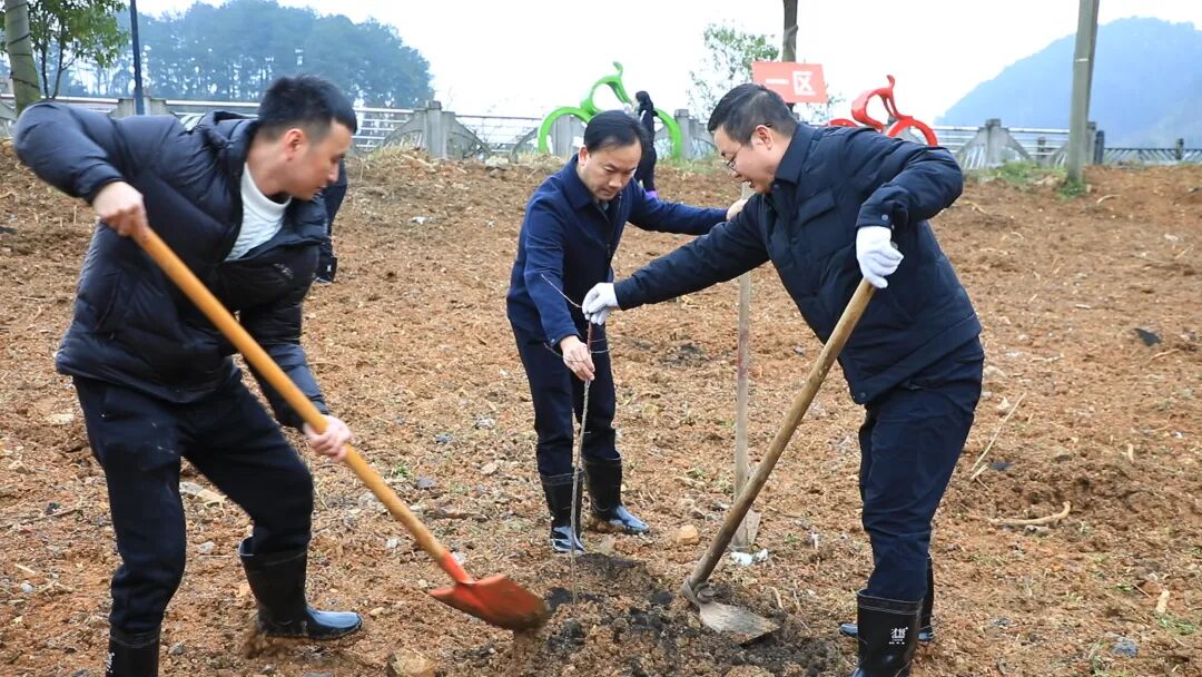 在金海雪山县级义务植树点,春意盎然、干劲十足。全体干部职工迅速投入到植树劳动中,分组协作、默契配合,严格按照植树技术规范,扶苗、填土、压实,每一个步骤都一丝不苟,配合得井然有序,用双手播种绿色希望。在大家的共同努力下,一棵棵翠绿的树苗迎风挺立,焕发出勃勃生机。