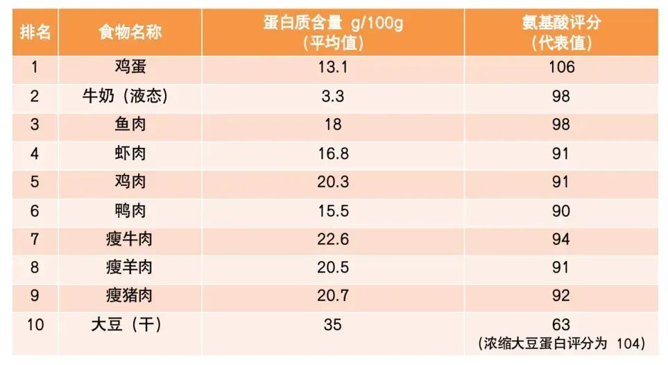 中国营养学会曾评选出排在前十名的“优质蛋白质十佳食物”:鸡蛋、牛奶、鱼肉、虾类、鸡肉、鸭肉、瘦牛肉、瘦羊肉、瘦猪肉、大豆。